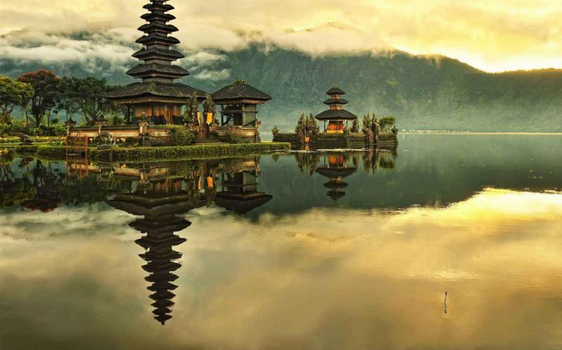 Then it is onwards to a market, located in the small village of Candikuning, above the southern shores of Danau Bratan. Its daily market is small but extremely diverse and colorful. It offers a vast range of fruit, spices and plants, including orchids. Just a little bit further down the road, Ulun Danu sits at the shores of Lake Bratan, the source of water for a large part of the island. It effortlessly combines Hindu and Buddhist elements into a unique sample of Balinese temple architecture. The location on the shore of the giant lake effectively filling a crater formed thousands of years ago by a seismic blast of an extinct volcano, is significant. The lake supplies most of the drinkable water to large areas of Bali. Dense pine forests tumble down the slopes of Mount Bratan to the calm shoreline dotted with holy shrines.